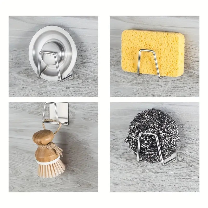 Support d'Éponge en Acier Inoxydable - Porte-Accessoires Adhésif pour Évier de Cuisine